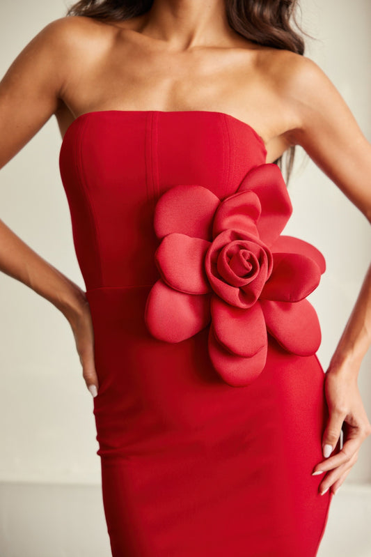 Off Shoulder Fashion Dress With 3d Flower Detail